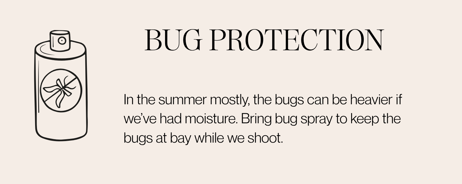 This page will walk you through what to expect, what to bring, and how to prepare for your session here, along with session-specific guidance for each type of shoot.